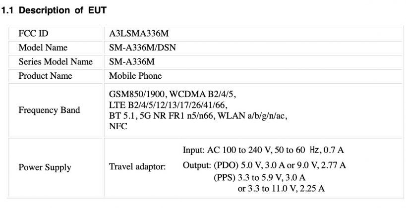 The FCC listing has further revealed that the device will include a battery with EB-BA336ABY model number. It was previously revealed through SafetyKorea certification that it offers a typical value of 5,000mAh. Lastly, the listing confirms connectivity features such as 5G, LTE, Wi-Fi 802.11ac, Bluetooth 5.1, and NFC.