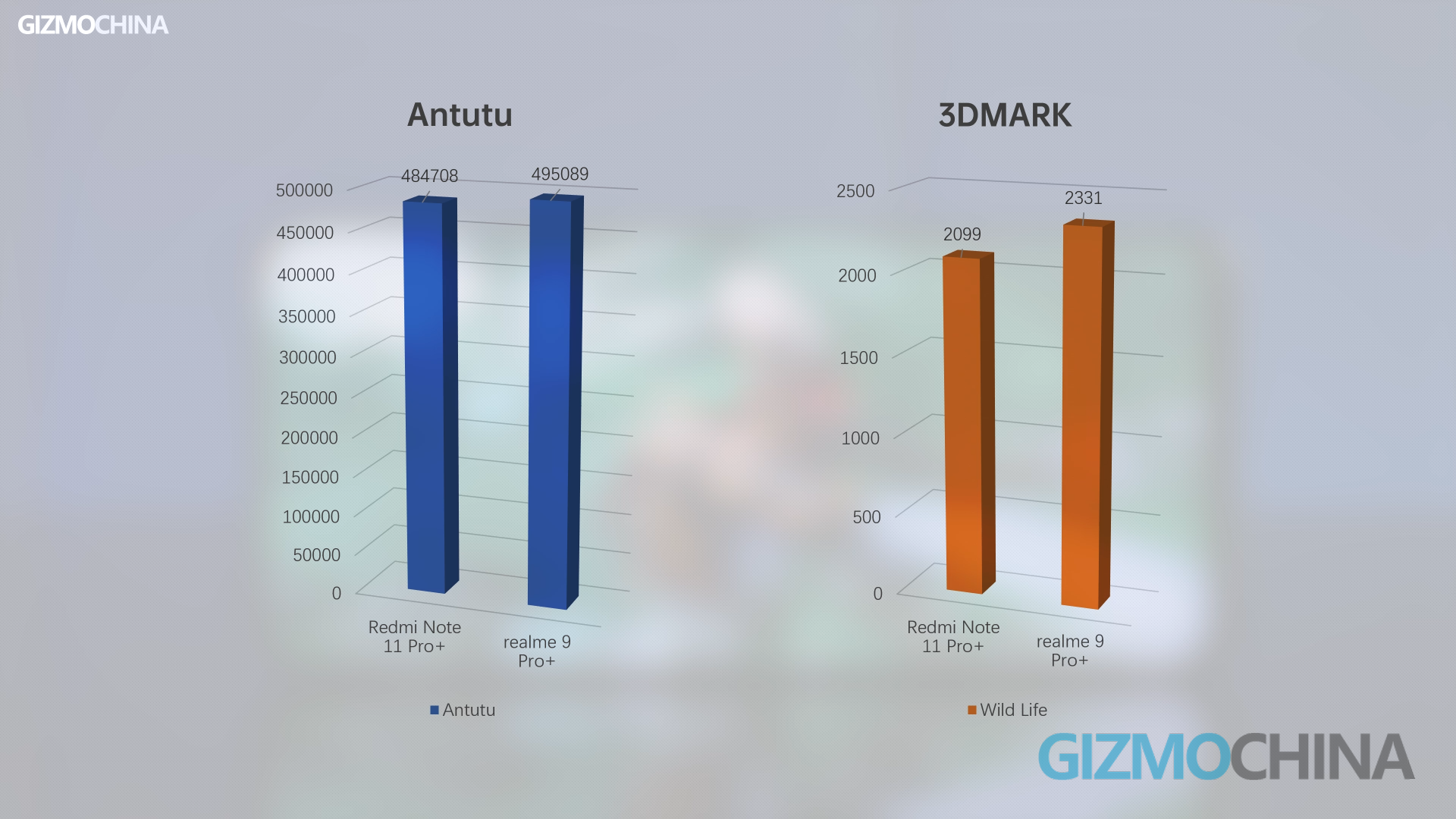 The realme 9 Pro Plus is powered by the MediaTek Dimensity 920, a mid-range processor that we’ve seen in the Redmi Note 11 Pro and Pro Plus China versions, and has a Benchmark score that compares side-by-side with the Redmi Note 11 Pro Plus China version. Antutu is close to 500,000 points. 3D Mark 2300 points. GeekBench 5 scores are also a bit higher than the 11 Pro Plus for both single and multi-core. Probably because realme 9 Pro plus uses the Vapor Chamber Cooling System, the larger heatsink area allows the 9 Pro plus to unleash even more performance.