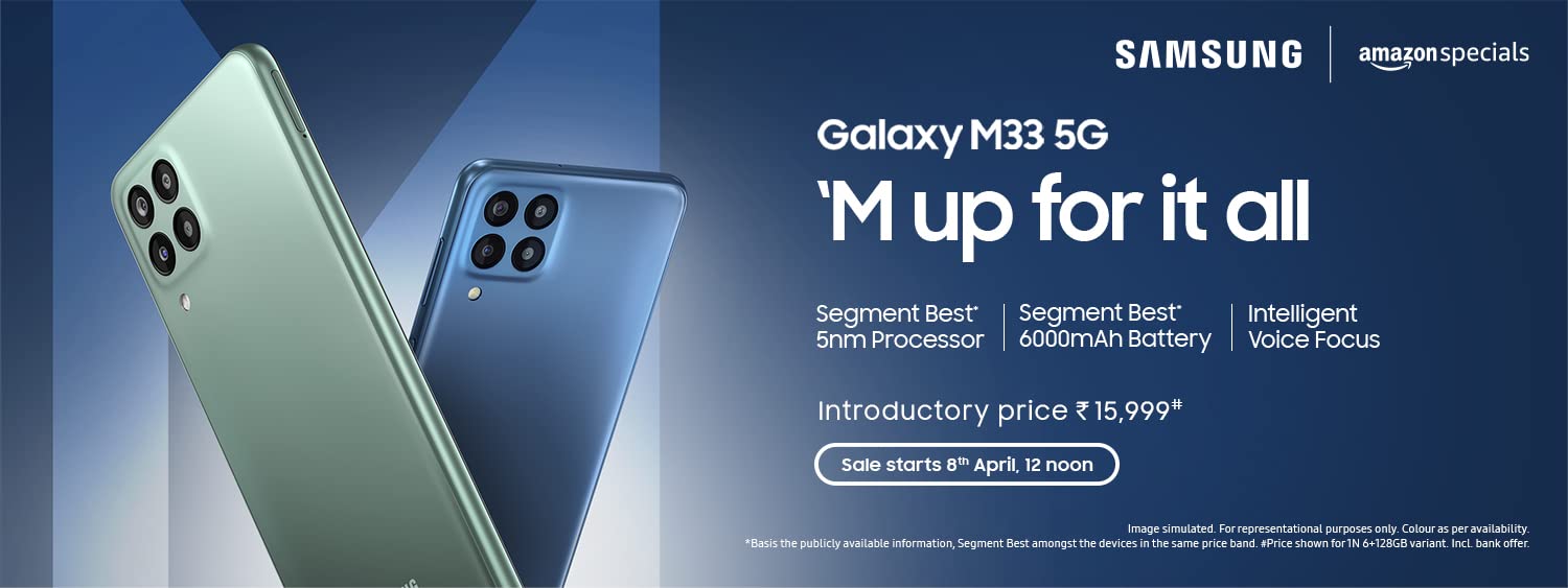 The Samsung Galaxy M33 5G will be available via Amazon India and Samsung India online store from April 8. While the 6GB/128GB RAM/ internal storage model will be sold for Rs. 17,999 (~$237), the 8GB/128GB model will be sold for Rs. 19,999 (~$257). Samsung India says it is offering instant discounts of Rs. 2,000 (~$26) for ICICI Bank Credit cards and EMI transactions. The Samsung Galaxy M33 5G will come in two color variants namely ocean blue and green.