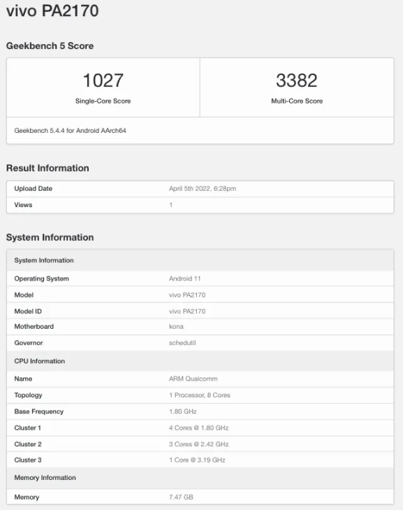 The listing further reveals that the device comes with 8GB of RAM and will run Android 11 out of the box. Coming to its Geekbench performance, the Vivo Pad scored 1027 points in the single-core test and 3382 points in the multi-core test.