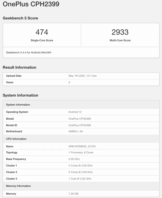 The device has now made an appearance on Geekbench with model number CPH2399. The listing revealed that the device comes powered by a MediaTek Dimensity 1300 SoC accompanied by 8GB of RAM. It operates on Android 12-based OxygenOS 12.1.