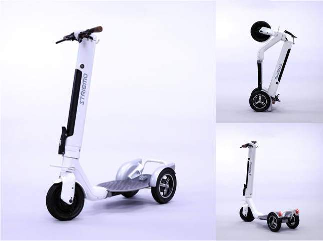 The unusual addition of a third wheel to the standing electric scooter offers it greater balance. Stability is enhanced with a sturdy frame and technology that supports such balance even at top speeds. The self-balancing mechanism, according to Honda, is a vital element of the scooter’s structure. The Striemo has a top speed of 25km/h and a range of 30km on a single charge.