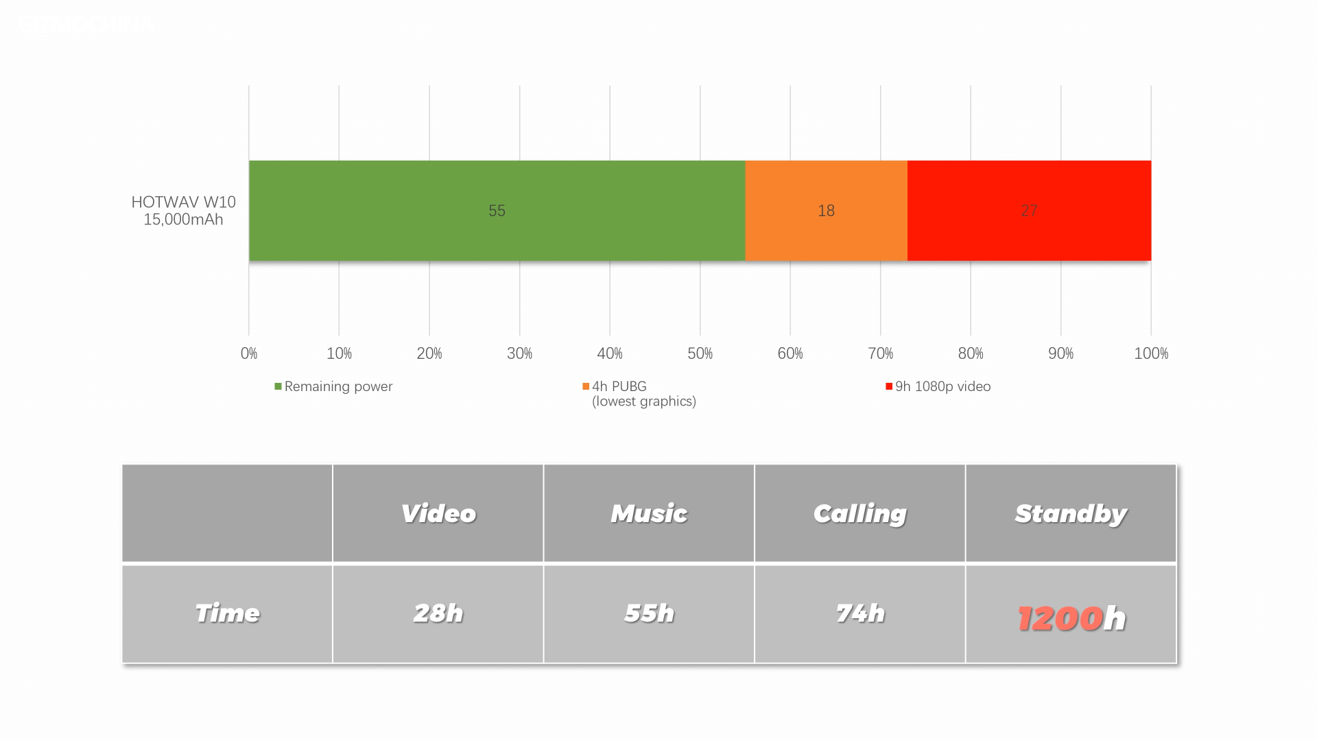 Now let’s talk about its huge battery. 15,000mAh may not be the biggest battery in the world, but it’s enough to beat 99% of other phones. Because its processor is so power-efficient, there’s no way we can drain its huge battery. When we received the W10 with 65% battery, we used the W10 to play 1080P online videos all night and then continued to run PUBG at lowest graphics, and the battery still had 20% left. Then we have to refer to the official data. According to the official W10 Standby time can reach 1200 hours, which is 50 days. In the field, you no longer have to be afraid of losing contact with family and friends because the phone is out of power.