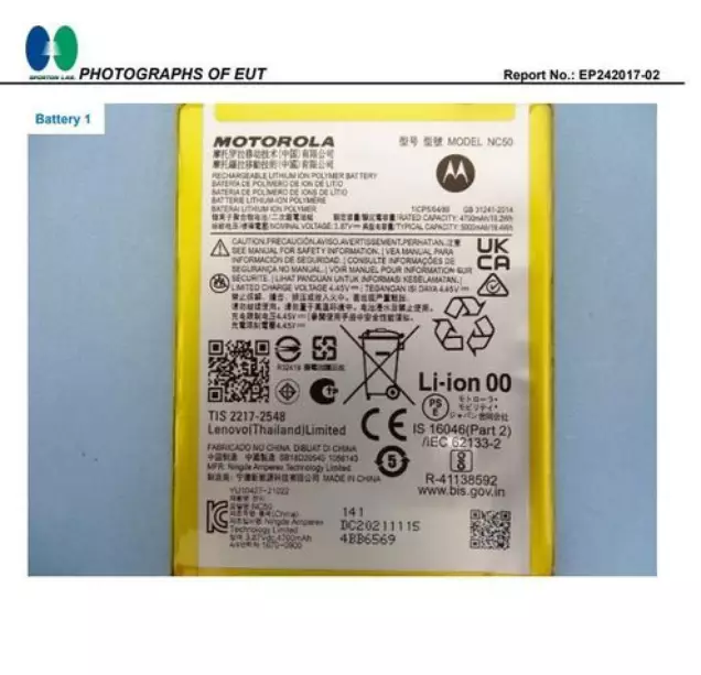 The certification reveals that the device has the model number XT2235-3 and comes with a 5,000mAh Li-ion battery unit with support for 33W fast charging. The packaging of the smartphone will include an AC adapter, charging cable, and earphone.