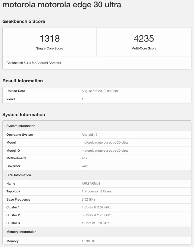 Ahead of its launch, MySmartPrice has spotted the Edge 30 Ultra on Geekbench revealing details like SoC, RAM, OS, and more. So, let’s take a look at the listing.