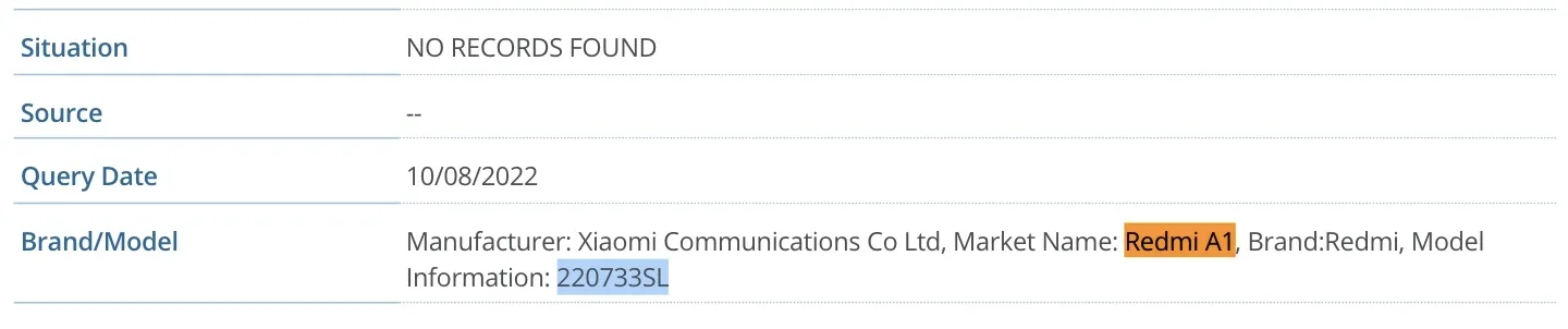 The device was also spotted on multiple databases like IMEI, FCC, TUV Rheinland, and Geekbench 5 revealing that the device will be called the Redmi A1. It will have a 220733SL model number in Europe, 220733SG in the global market, and 220733SI in the Indian market. The device has also surfaced with a 220733SPI model number on BIS hinting that it will also be sold by POCO as a rebranded device in India. Let’s take a look at its specifications.