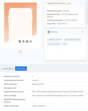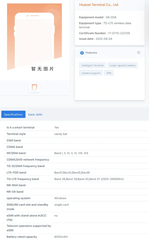 According to the listing, the device has model number GK-G58, and it carries support for LTE connectivity. It operates on the Windows platform and has a 6,000mAh battery and two cameras. The listing does not mention any further details, so let’s take a look at the information available on the device so far.