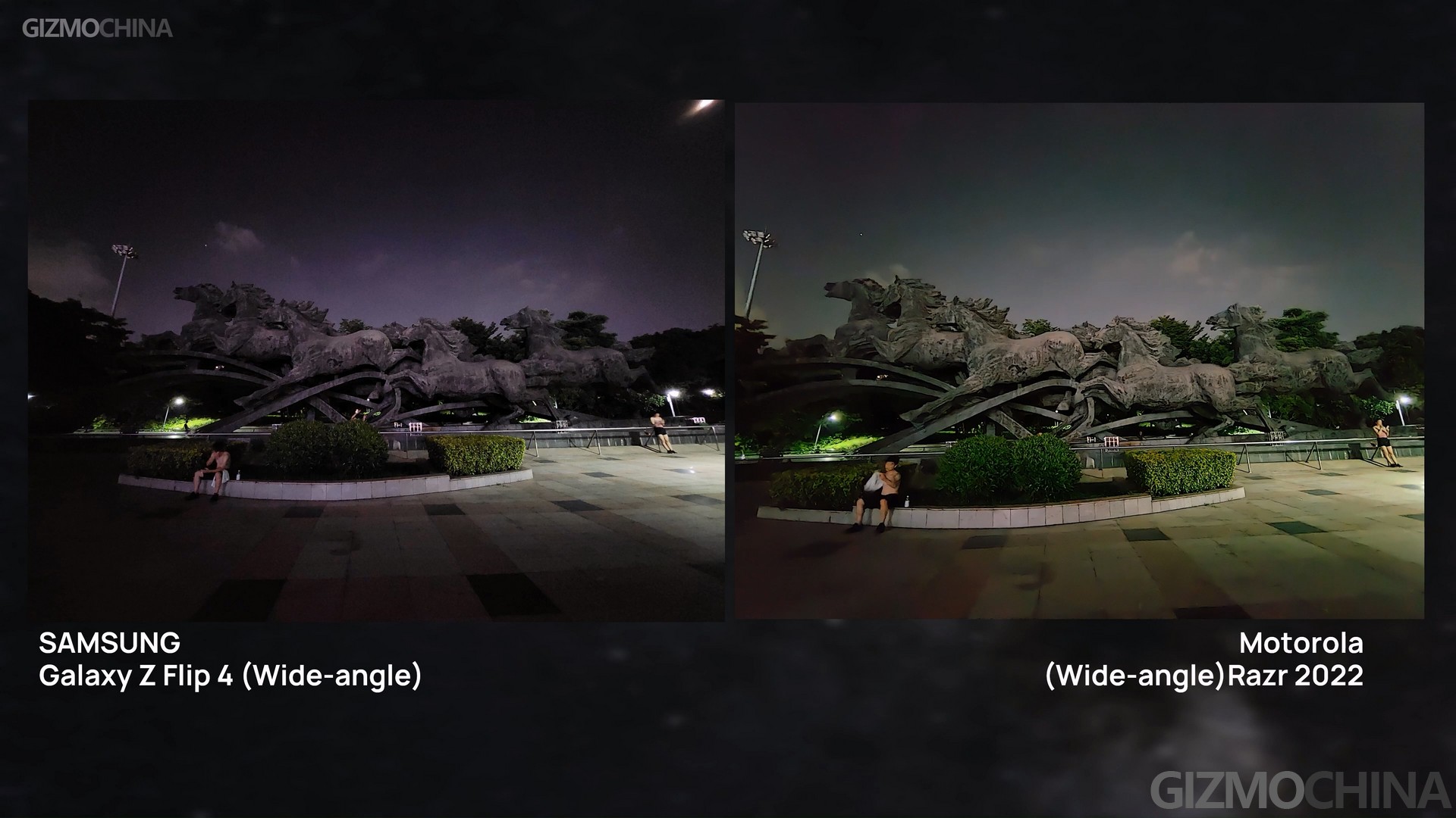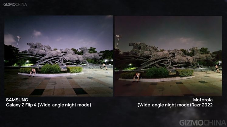 Things got similar for the wide-angle lenses. The Razr still got slightly better images, but what’s different is that the Flip’s sample got significantly improved under the night mode. Especially under extremely low lighting, it might catch up and reverse the result.