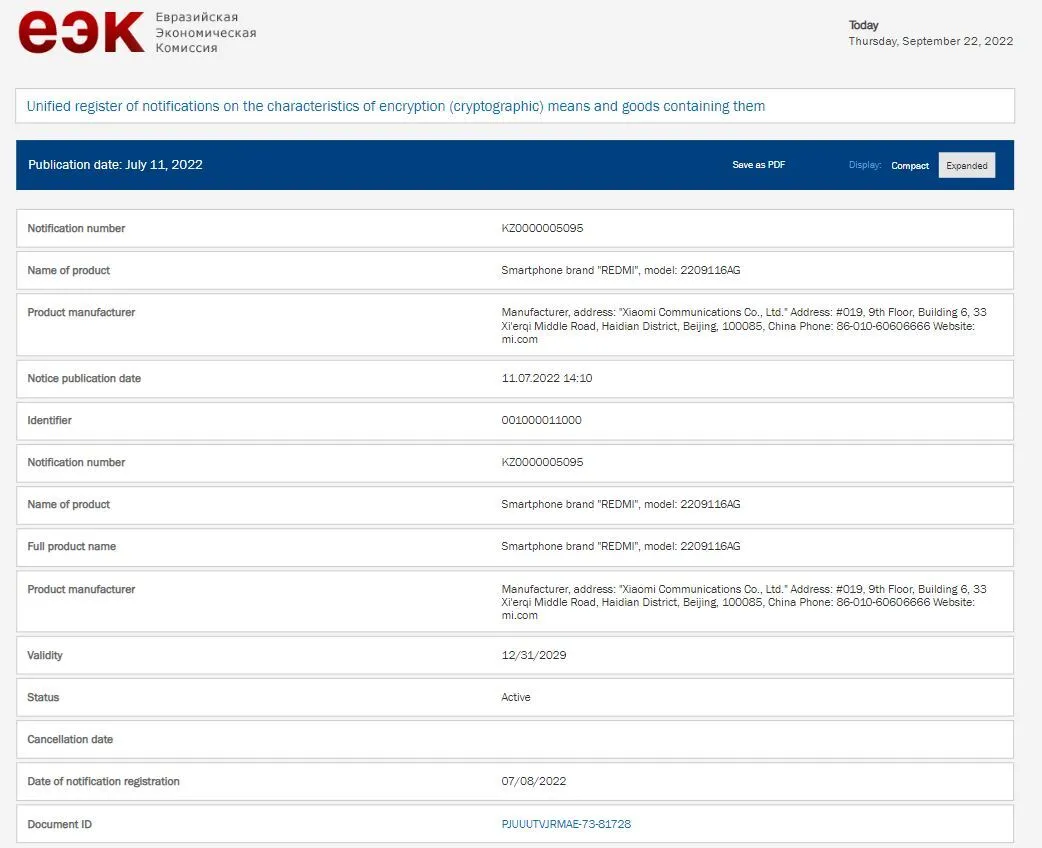 Starting off, the FCC listing reveals that the Redmi Note 11 Pro 2023 with model number 2209116AG runs on MIUI 13 out of the box. The EEC listing does not reveal any product details.