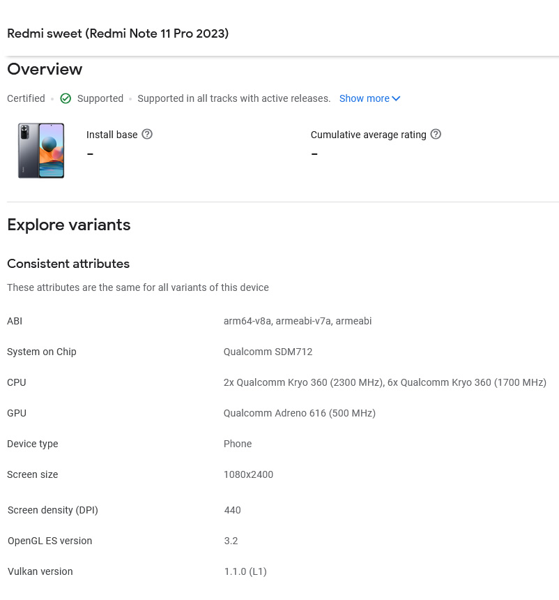 Coming to the Google Play Console listing, it shows that the device has a 1080 x 2400p resolution display with a 440ppi pixel density. The listing also mentions that the device has a Snapdragon 712 SoC, which is paired with an Adreno 616 GPU. The chipset information could be an error in the Google Play Console, as pointed out by Kacper Skrzypek, and instead, the device could feature a Snapdragon 732G.