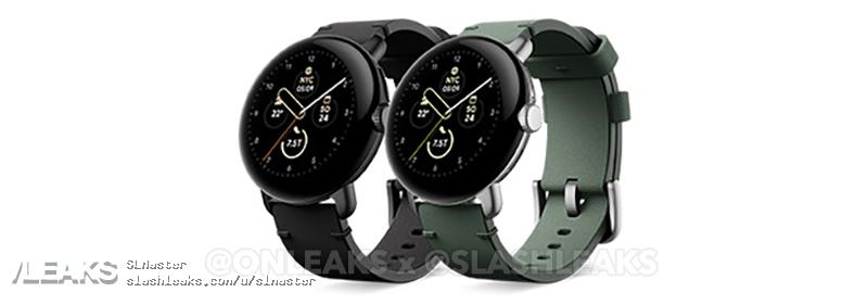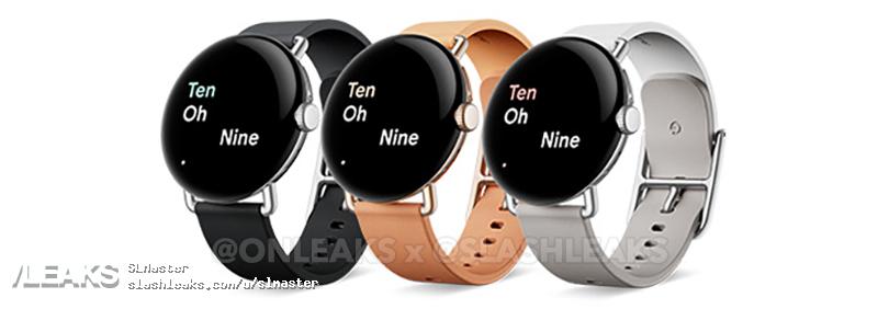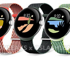 The Pixel Watch leaked marketing materials published on SlashLeaks reveal that it will come in black, silver, and gold color variants. The above images show that users will be able to choose from band choices such as lemongrass, olive, red, grey, beige / brown and green. The images also give a good look at the round dial and the crown of the Pixel Watch.