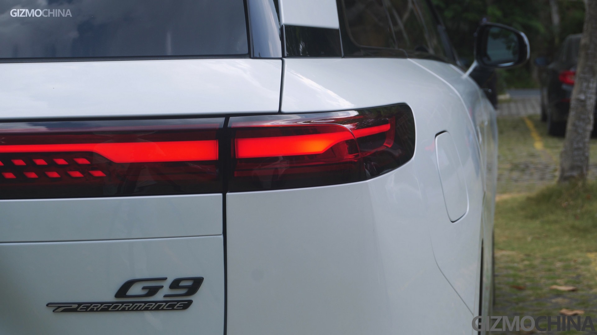 And unlike the P7 model, you can see more hard-edged body lines on the side of the G9, but it’s still relatively smooth if compared with other traditional SUVs. The back also got slightly changed with a wider light bar. Two separate rear lights are hidden as two slim bars under the trunk door. The body lines of the rear are much more rigid than the P7.
