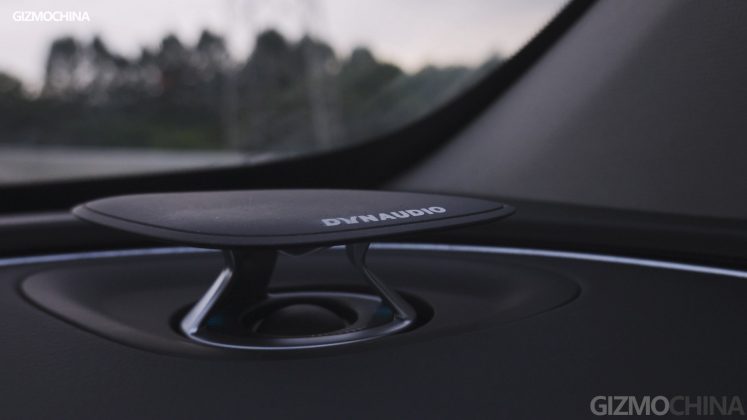 In the connection between the dashboard and the curved center console, you can see a strip of ambient lights across the right side, which is also integrated with a slim AC vent like what we’ve seen in the P7. On the center console, there’s a wireless charger for smartphones and two cup holders. Well, they are quite small twos. The 60W USB-C charging port, another USB port, and the cigarette lighter are all located in the hollowed-out position of the center console.