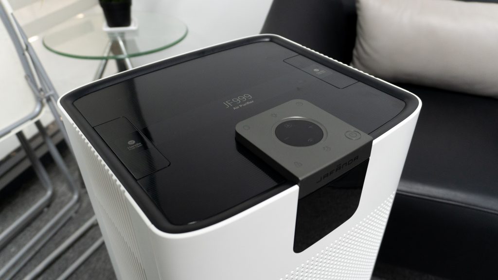 Compared to other air purifiers, the Jafanda JF999 has a more elegant and refined design and aesthetic. My favorite part is the intuitive control panel and the OLED screen on the front of the purifier, which shows you all the information you need about the air, including PM2.5 concentration, temperature and humidity, and from which you can find out the working status of the purifier and the life of the filter.