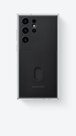 Answer calls and manage your music from the clear window, and keep cards handy in the built-in pocket.