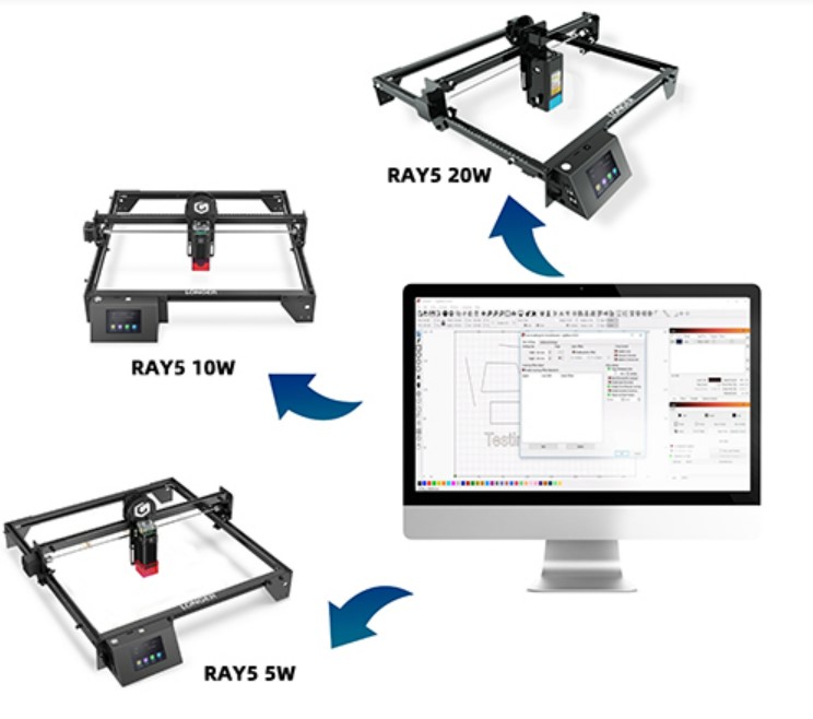 The Ray5 20W laser cum cutter comes with a 3.5” smart color screen which can be used to complete various DIY projects. The device comes with multiple data transfer options like Wi-Fi, USB cable, TF card, etc. It also comes with wide software compatibility which makes sit easy to use the device anytime and anywhere across the globe.