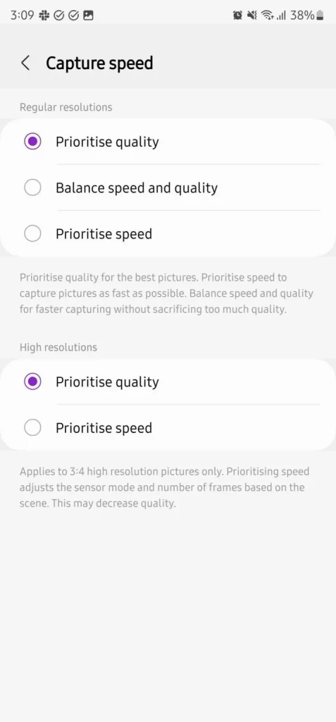In addition to Quick Shutter Tap, Samsung should also consider bringing the Capture Speed feature from the Camera Assistant app to the stock camera’s settings section. Samsung phones can sometimes take too much time to capture a shot for HDR and multi-frame noise reduction processing, and this can lead to missed moments or blurred images of fast-moving subjects.