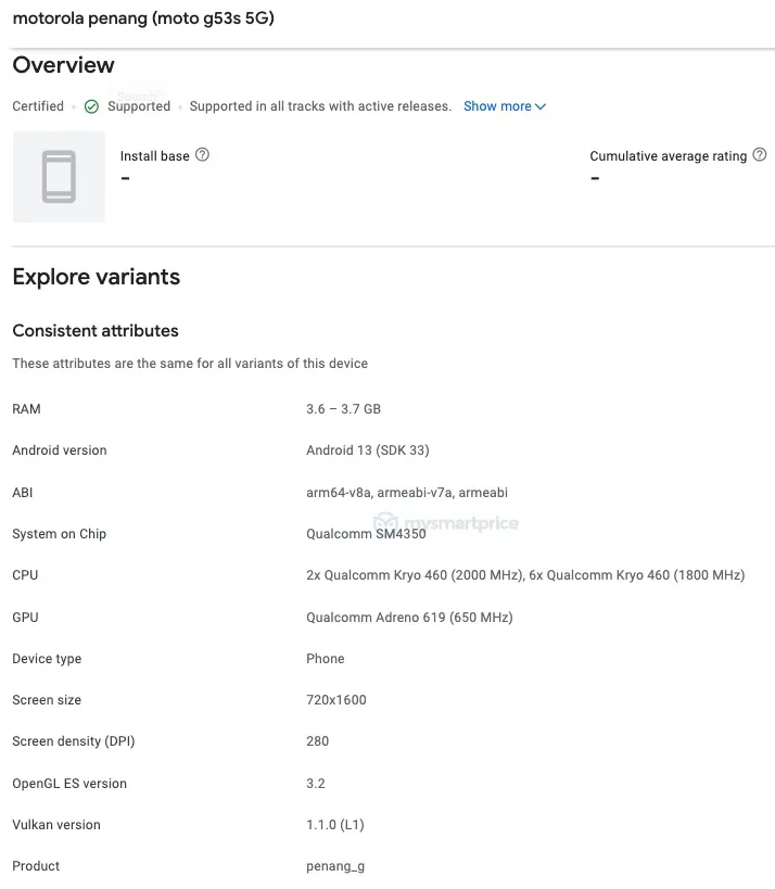 Earlier this year, Motorola launched the Moto G53 5G budget-range smartphone in China. The global variant of the device has also appeared on GCF certification, hinting at an upcoming global launch. Now, the Moto G53s has made an appearance on the Google Play Console listing with hardware and software information.