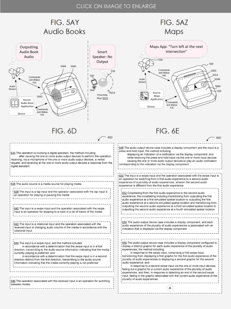 The patent application includes a wide range of patent figures showcasing the case-display in action, demonstrating various scenarios using apps such as Apple Music, Apple TV+, Maps, Weather, and Audio Books. These figures illustrate the potential versatility of the touch display on the AirPods case, offering users a more convenient and enjoyable experience.