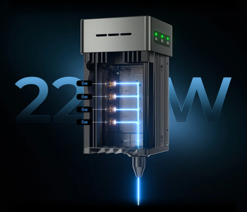 The Creality Falcon 2 22W is a versatile laser cutter and engraver that allows you to personalize various materials such as wood and acrylic with your preferred designs, quotes, and images. It employs an innovative FAC spot compression technology, which combines four high-performance 6W laser diodes to amplify the laser power to 22W. This enhanced power capacity enables it to penetrate different materials and cut through 15mm thick wood, 10mm black acrylic, 0.05mm stainless steel sheet, and other materials in just one pass.
