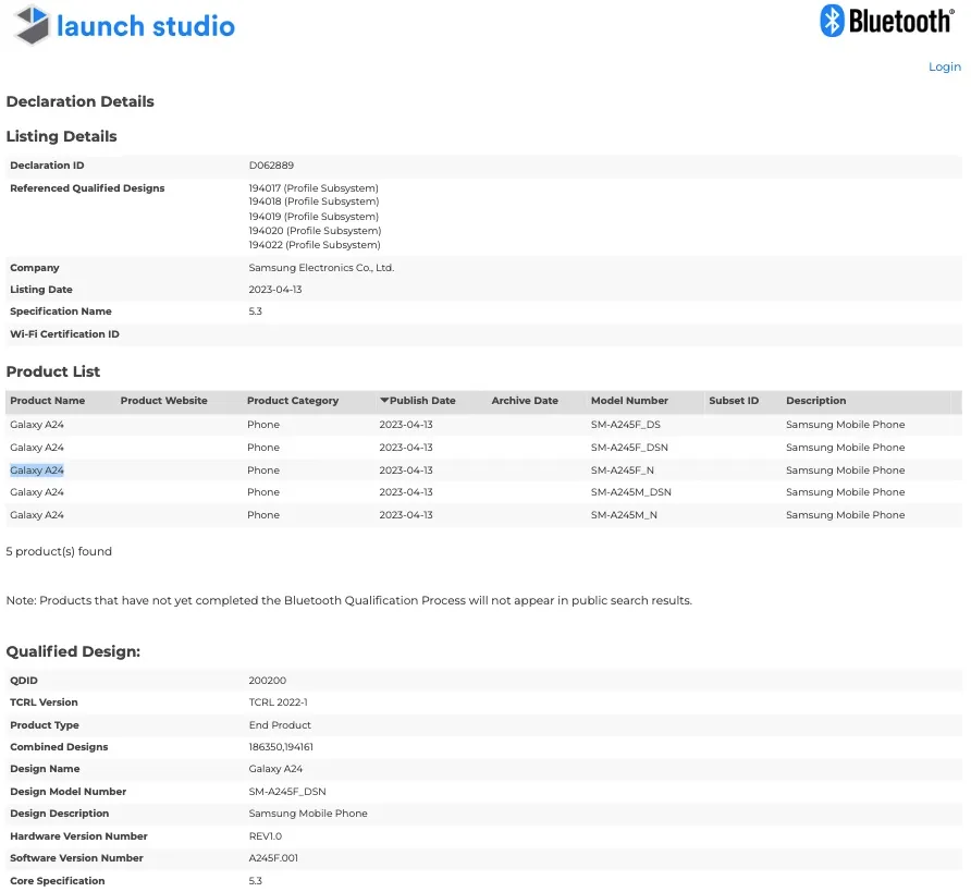 Samsung is preparing to introduce a new addition to its A-series lineup, a 4G smartphone called the Samsung Galaxy A24 4G, which may be launched in the near future. Recently, details about the device’s design, price, and specifications were leaked via a report, and its appearance was also revealed through a case render released last month. The latest update is that the Samsung Galaxy A24 4G has received certification from both Bluetooth SIG and TUV, indicating that its launch is imminent.