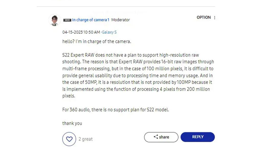 However, according to a statement from the head of the camera division on Samsung Community Korea, these plans have been halted due to technical limitations. While no specific reason was given for the absence of 360 Audio support, it was confirmed that there is no plan to introduce this feature to the Galaxy S22. Unfortunately, this situation will cause disappointment among many users, especially those who paid hundreds of dollars for the best Android phone just a year ago, only to face “technical limitations” after just one year.