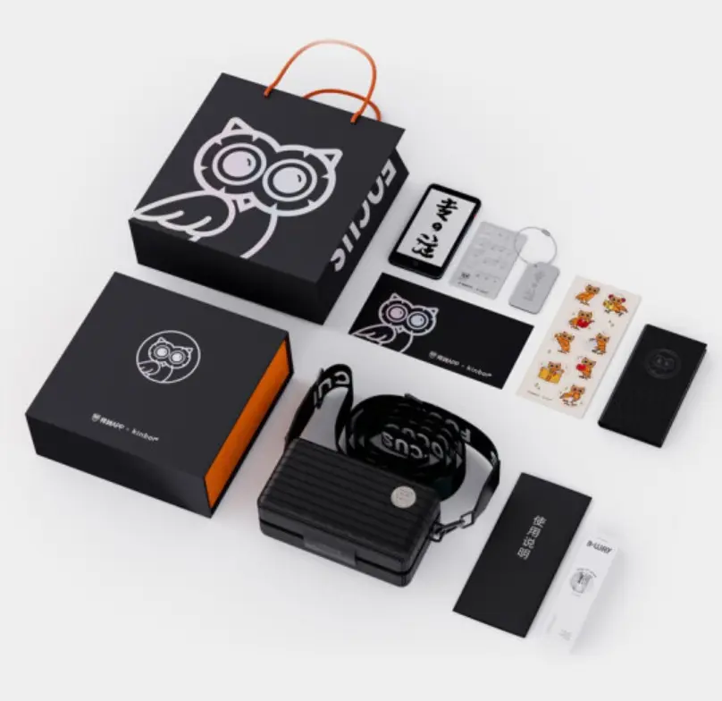 The extras in the new Inkpalm Mini 2 include a luggage tag, stickers with an owl reading books, and a durable traveling pouch that can be attached to your shoulder with a shoulder harness. The traveling pouch is made of super high-grade plastic and the extras also include a ledger with a pen for taking notes or drawing.