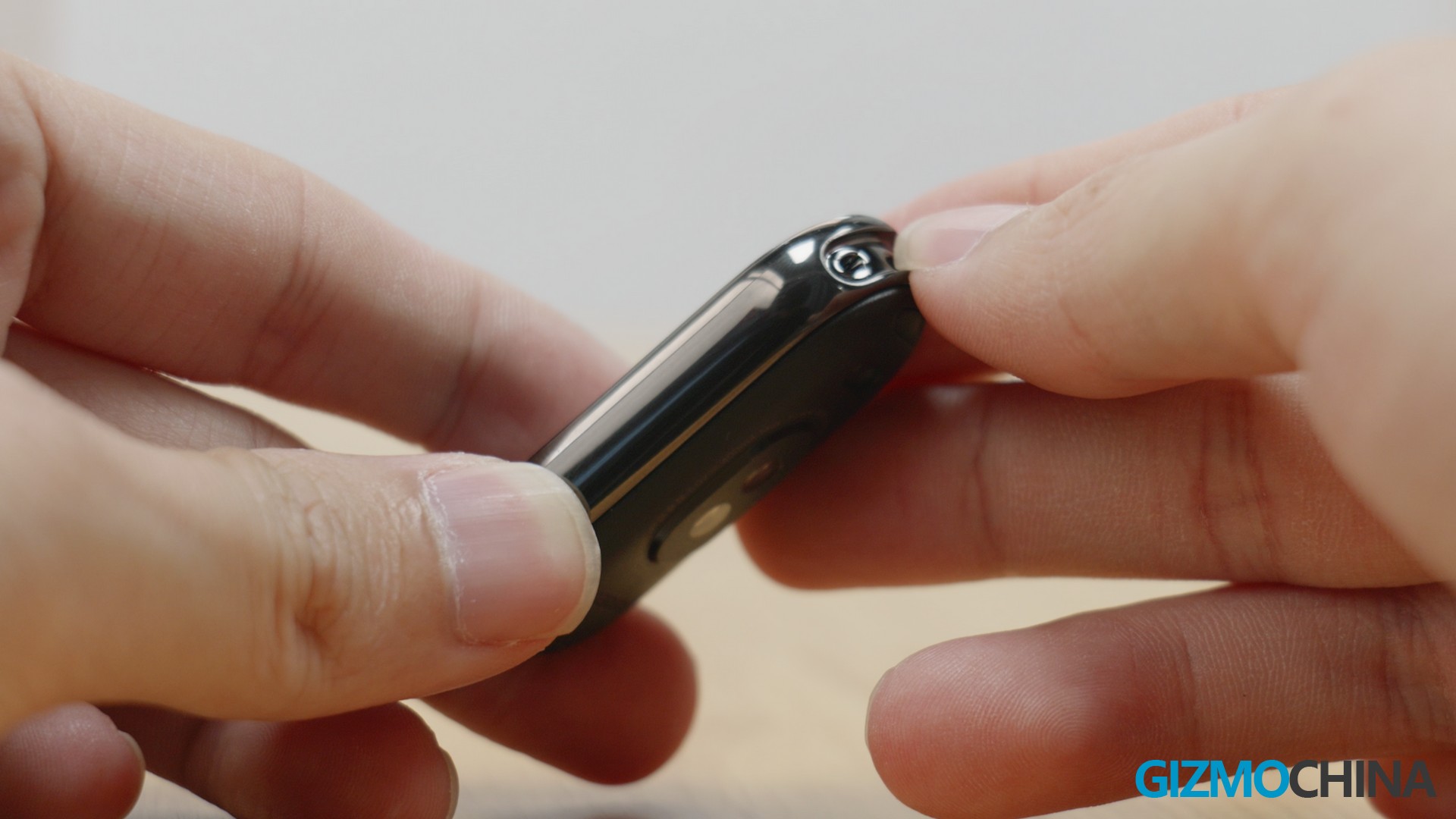 This is the new Xiaomi Smart Band 8. Although its size is very close to its predecessor, but if we look closer we will find many differences. The first and most important thing is that the Band is no longer completely wrapped around the strap. It now has a new structure that supports quick removal. Like a traditional watch, you can remove one side of the strap from the Band by pressing the snap and pulling it outwards.