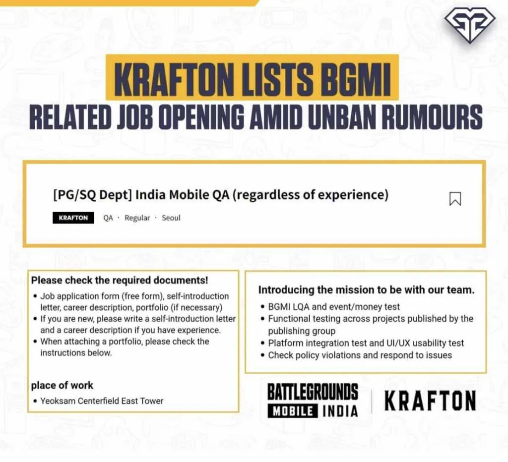 Ever since then, multiple reports have surfaced online claiming that the popular battle royale game will be making a comeback. According to reports, Krafton has been collaborating with the government to seek the lifting of the ban. Encouragingly, recent developments suggest that the South Korean company might be making progress, as Krafton has recently advertised a job opening for an India Mobile Quality Assurance analyst.