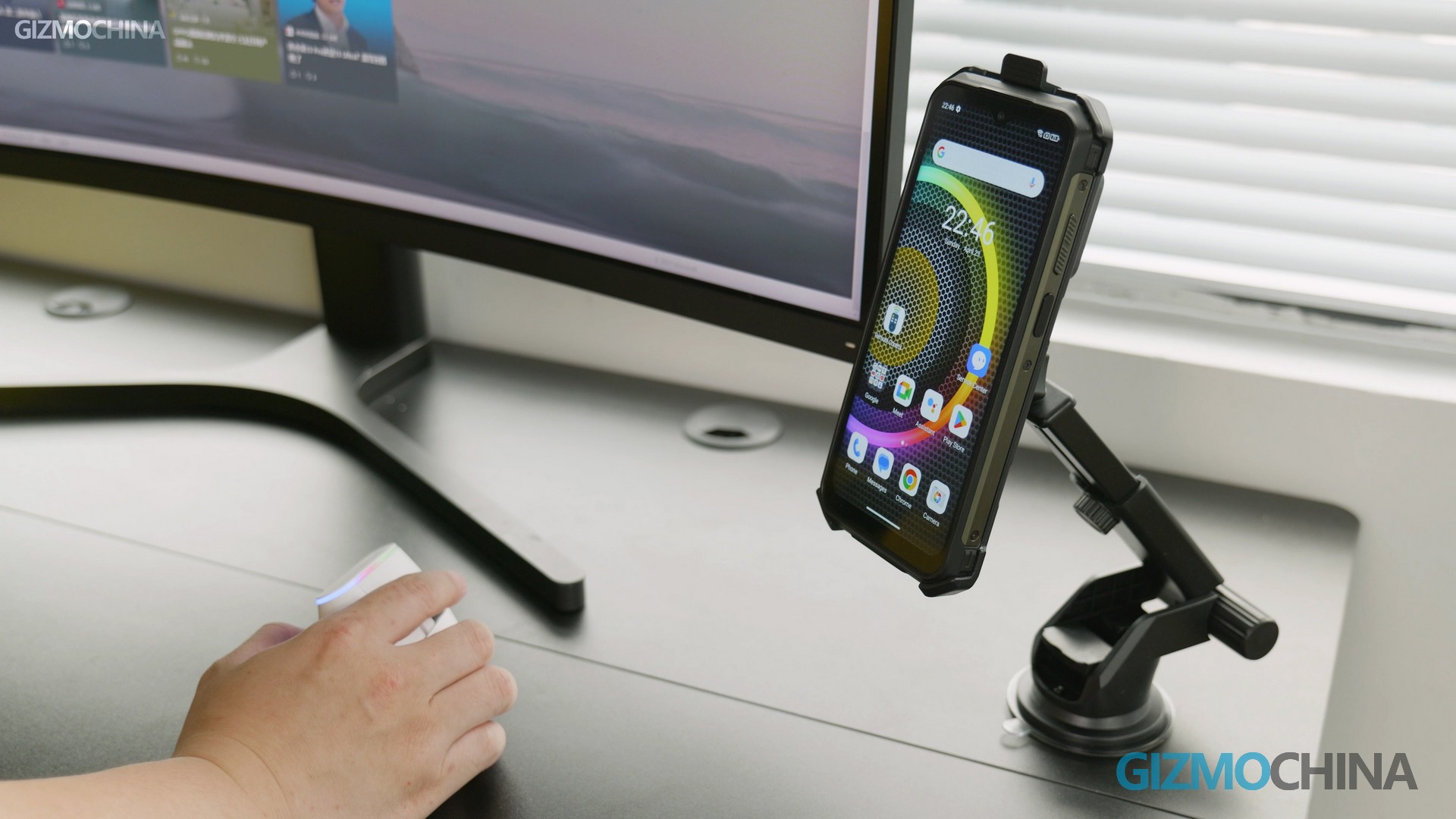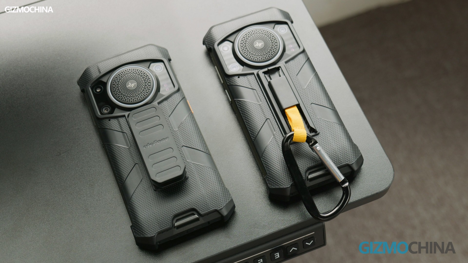 In addition to the Armor 21, we also received several accessories for it. Let’s start with the phone case. This case is made of a hard PC and has a groove on the back. With the other two accessories you can hang the phone on your clothes or backpack, quick-release design is also available to let you quickly take the phone off.