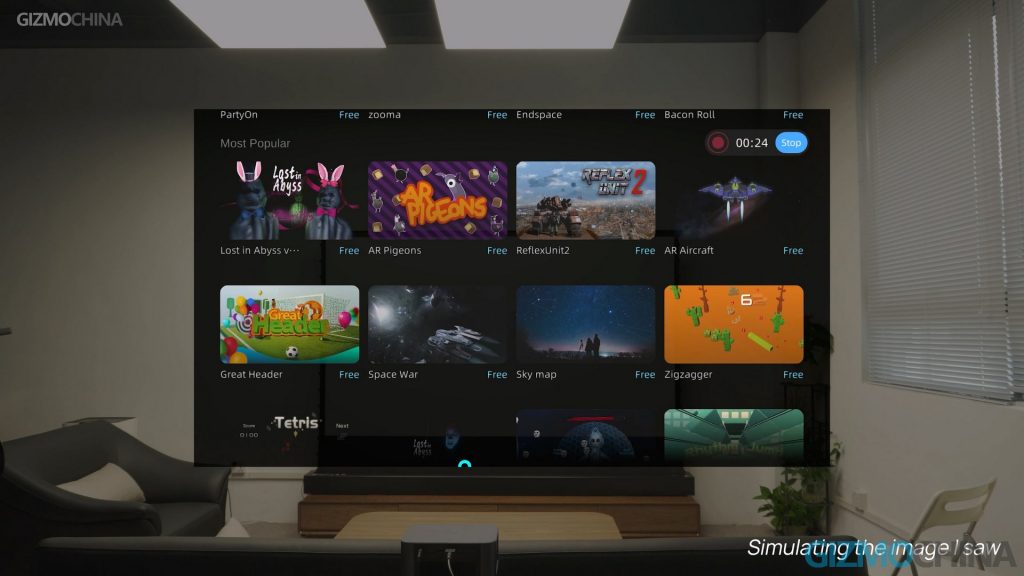 You can access the AR mode in the Rokid app, which offers quite a few AR games and applications that are adapted to the Rokid Max, and turn your phone into a remote as a pointing cursor. In AR mode, it offers quite a few AR games and applications that are adapted to the Rokid Max. In addition, here you can access the quick apps which are used a lot with the AR glasses, such as YouTube and Twitch.
