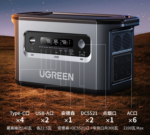 UGREEN, in collaboration with BYD Electronics, has recently unveiled the Star Outdoor Power Supply GS2200. This cutting-edge device is priced at 6,899 yuan and has a power specification of 2200W and 2kWh. It joins the existing lineup of the Star series, which includes the 600W 0.68kWh and 1200W 1kWh models.