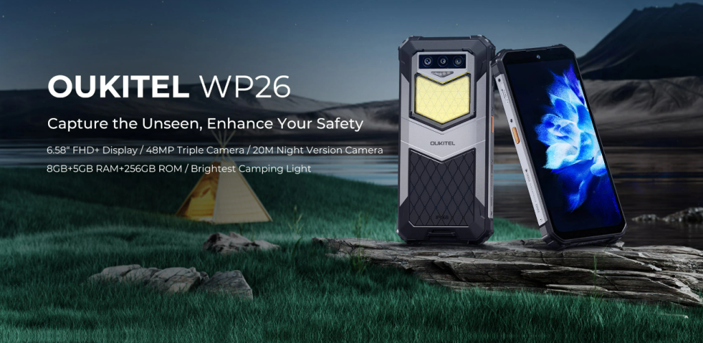 The Oukitel WP26 rugged smartphone will be released worldwide on AliExpress. It is specifically designed for individuals who enjoy traveling the globe and indulging in outdoor adventures, even in challenging and harsh environments. This rugged phone stands out as an excellent option for budget-conscious consumers, featuring impressive specifications such as a powerful MTK Helio P90 processor, a high-resolution 48MP main camera, and an integrated 1200 lumens camping light.
