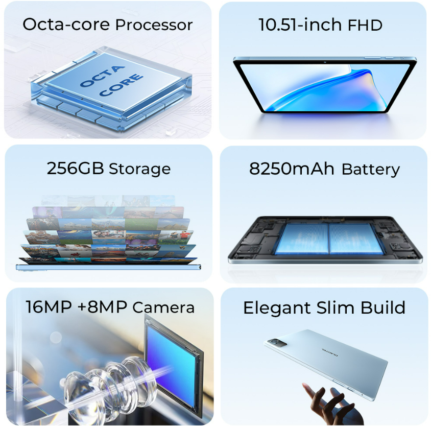 OUKITEL OKT3 features a 10.51-inch Full HD+ display. With a resolution of 1200 x 1920 pixels, every image, video, and game comes to life with vibrant colors and sharp details.