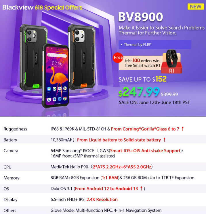 Enjoy an incredible discount of $152 on the Blackview BV8900, bringing the price down from $399.99 to an unbeatable $247.99