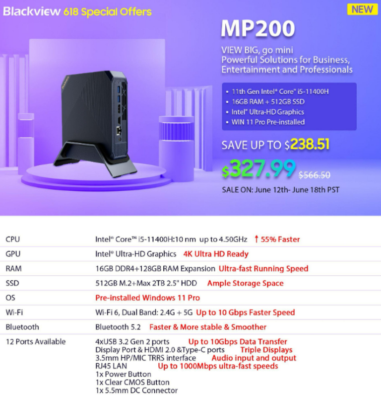 Get an incredible discount of $238.51 on the Blackview MP200, bringing the price down from $566.50 to an unbeatable $327.99