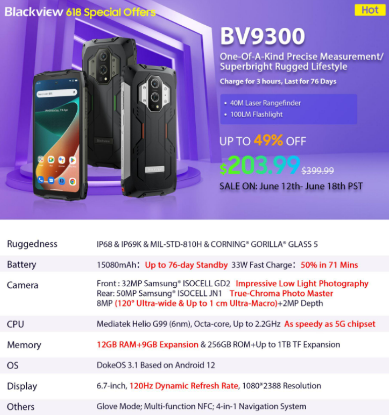 Save a remarkable 49% on the Blackview BV9300, with the price reduced from $399.99 to an incredible $203.99