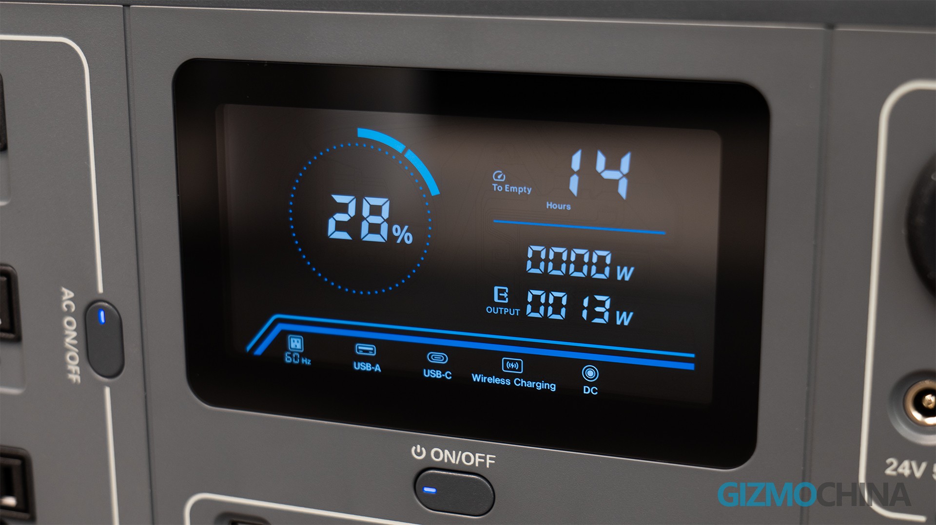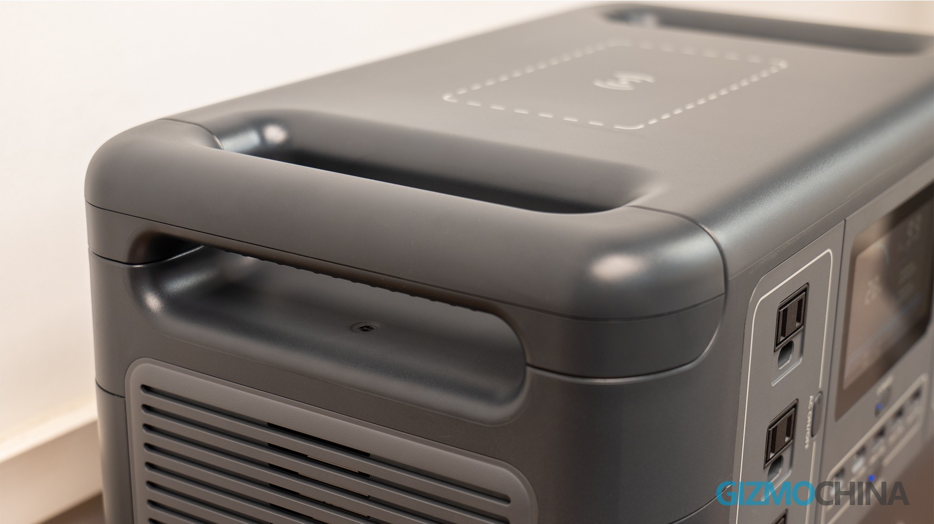 It has almost all the ports and buttons on the front, a wireless charging pad on top, and air inlets and outlets on both sides. On the back is a very large LED light with 12w of power, which I’m sure will make it easier to do your thing at night. 14.8kg isn’t too heavy, so even a kid can easily move around your campsite with it.