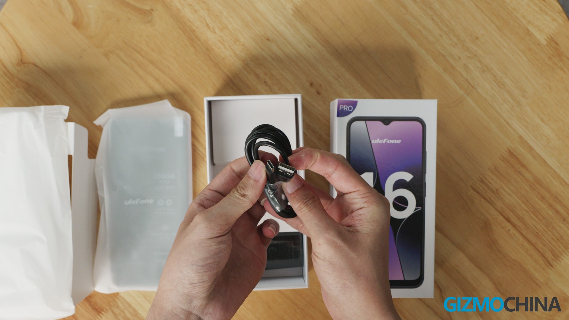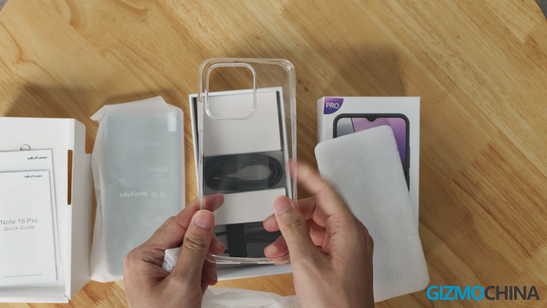 Apart from the phone, we got some paper, a protective case, a USB-A to USB-C cable and a charger inside the package.
