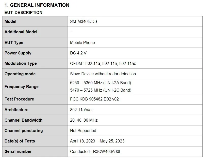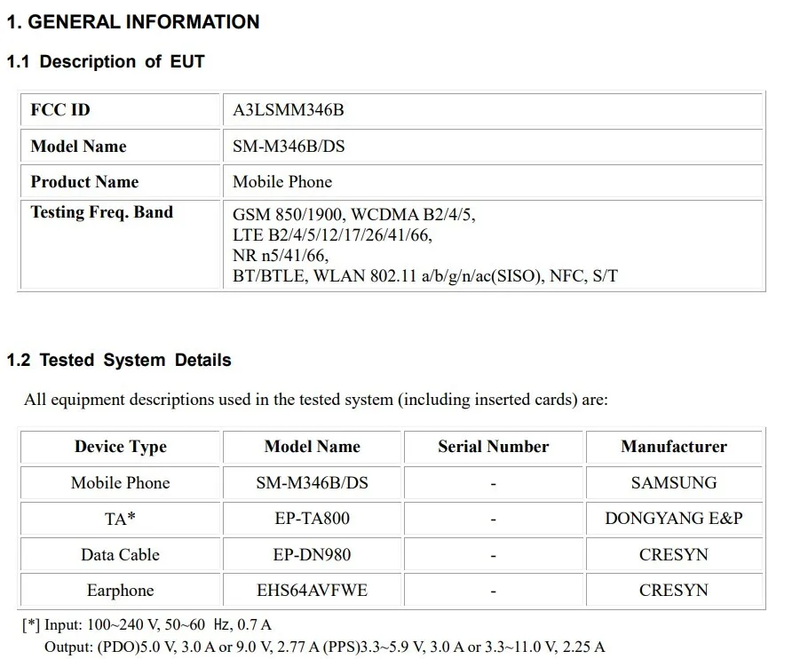 Based on information from the FCC certification, the Galaxy F34 5G has been assigned the model number SM-M346B/DS. The certification confirms that the device will feature 5G connectivity, as well as support for Bluetooth and Wi-Fi 802.11 b/g/n/ac. Additionally, the certification reveals that the Galaxy M34 5G will come bundled with an EP-TA800 charger, indicating 25W fast charging support. Unfortunately, the certification does not reveal any further details about the device, so let’s take a look at what’s known so far.