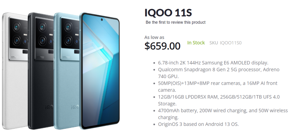 iQOO 11S smartphone is now available on Giztop. The latest mid-range smartphone from Vivo iQOO is available for $659 only. Please note that the phone is a Chinese edition, but it has Google Mobile Service and Google Play store installed and supports OTA updates.
