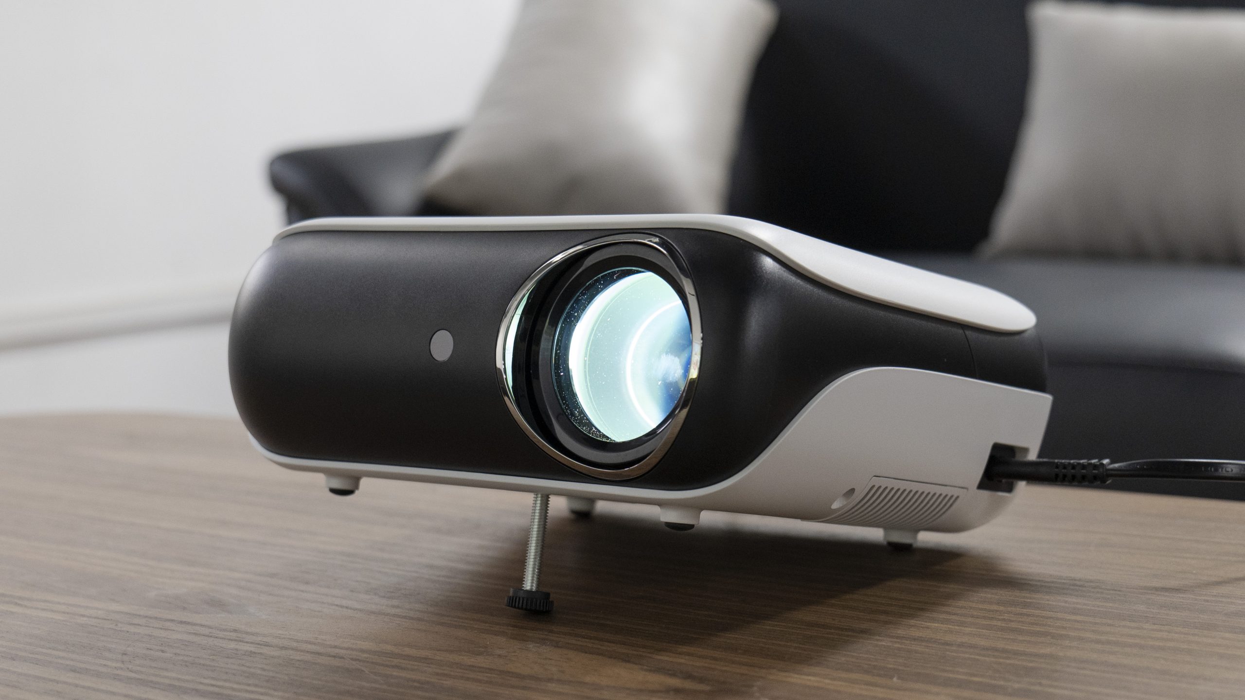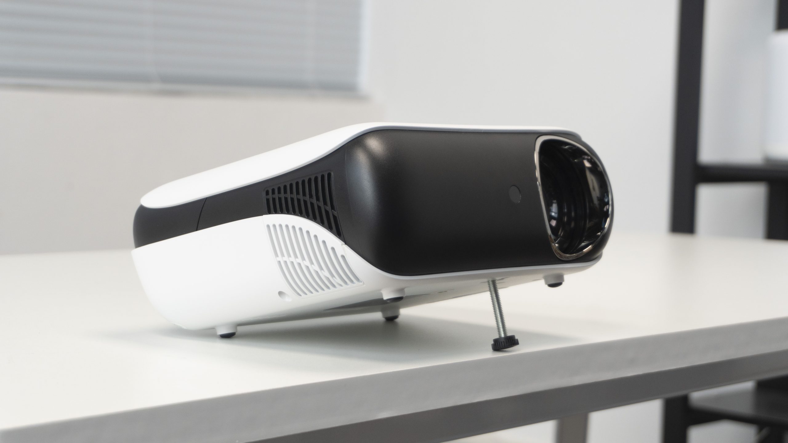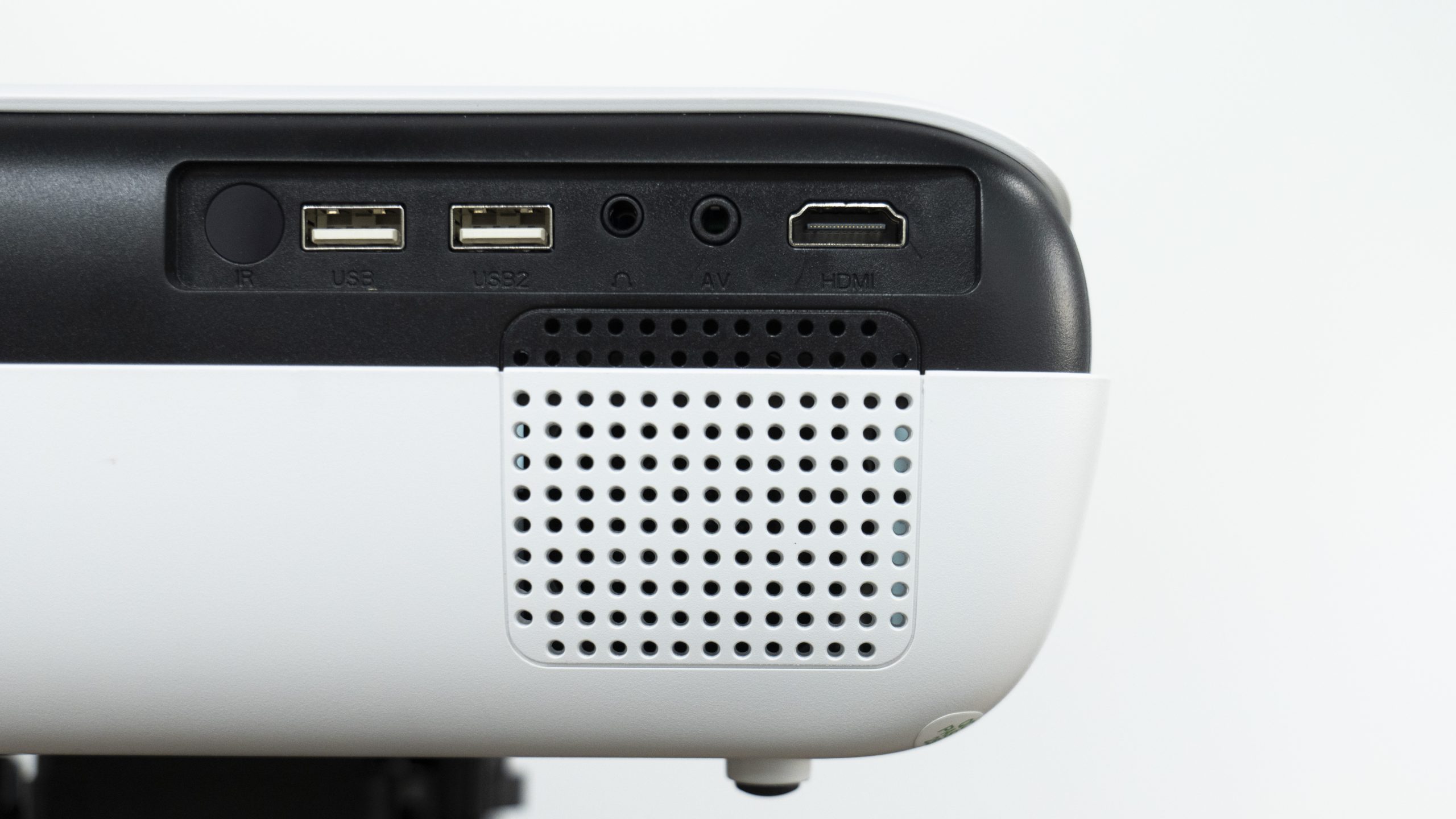 The Happrun H1 projector has a very compact and sleek body made of black and white plastic that you can carry in your backpack wherever you want to travel. The surface of the projector body is matt and frosted, and it’s pretty good at scratch resistance since we took it around and it did withstand those trials. The shield has no visible damage, so you don’t have to worry about any scratches after a period of use.