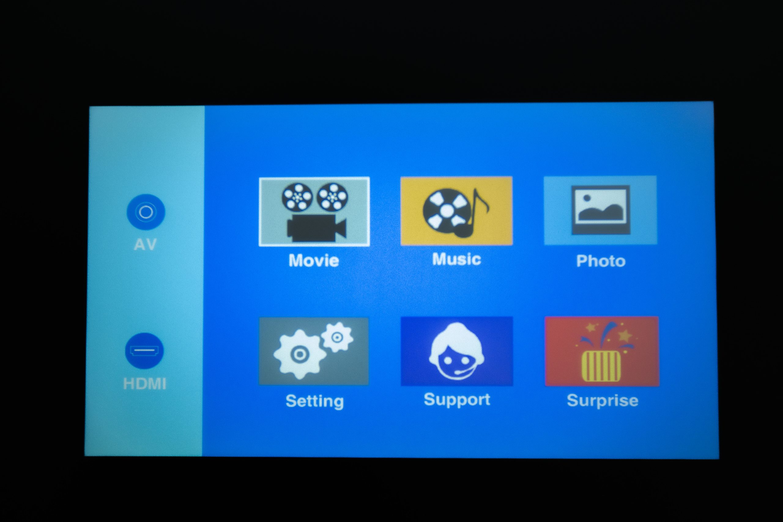 The Happrun H1 has an easy-to-use UI. If you have external storage connected via the USB port, you can quickly access your movies, music, and photos from the home screen. The video source switch is also on the left side of the home screen so you don’t need to go through a secondary menu to get it.
