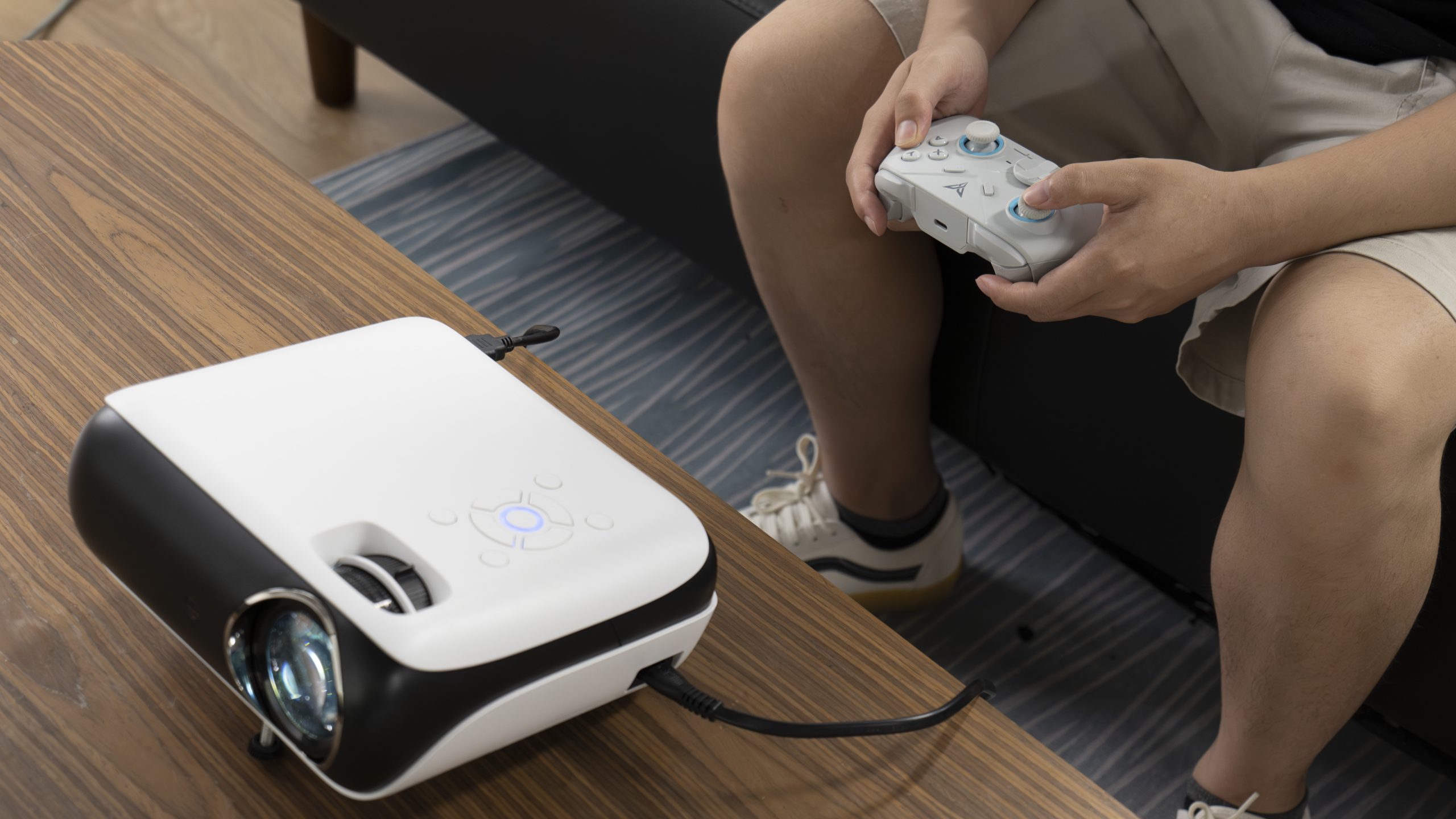 The projector has a set of built-in speakers to provide you with good enough stereo sound. Or if you’re playing games late at night and don’t want to disturb your neighbors, you can also connect it to your wireless headset via Bluetooth.