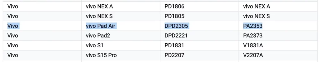 The Google Play Supported Devices list of the upcoming Vivo tablet confirms that it will named Vivo Pad Air. It is listed with a model number PA2353. However, apart from the model number and moniker, the listing does not reveal any additional information of the tablet. It seems that the Vivo Pad Air will likely be a toned-down version of the Vivo Pad 2. We can expect the Vivo Pad Air to surface on certification websites and in leaks revealing its key specifications.