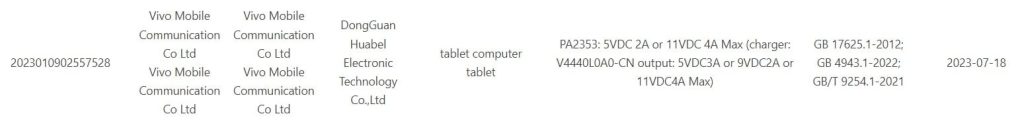 The Vivo Pad Air is listed with model number PA2353 on the 3C certification website. This is the same as the listing on the Google Play Supported Devices that confirmed the moniker of the tablet. The 3C listing reveals that the Vivo Pad Air will support 44W fast charging. It is the same as the Vivo Pad 2 that debuted earlier this year. Apart from this, the certification does not reveal any additional details. The upcoming tablet is expected to debut as early as next month (August) in China.