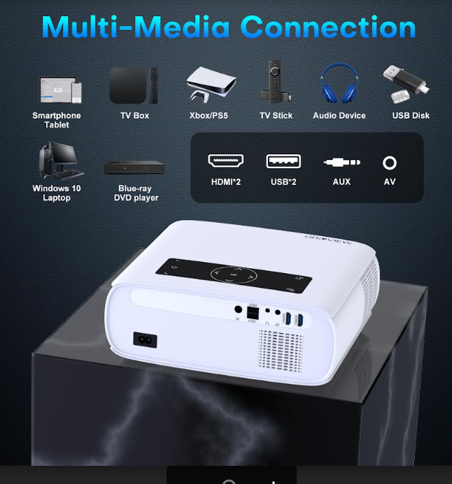 The GROVIEW 818C Projector isn’t just limited to a single medium – it’s a versatile hub for your multimedia needs. It seamlessly accommodates streaming channels, TV sticks, laptops, game consoles, smartphones, tablets, USB sticks, and more. Its compatibility knows no bounds, promising a diverse range of content options that align with your preferences.