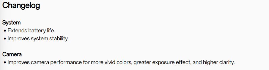 The new update extends battery life and improves the system stability. Further, it improves the camera performance and provides more colored photos with better quality and clarity. Below is the official changelog: