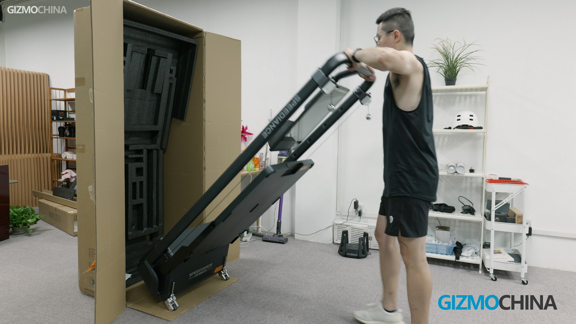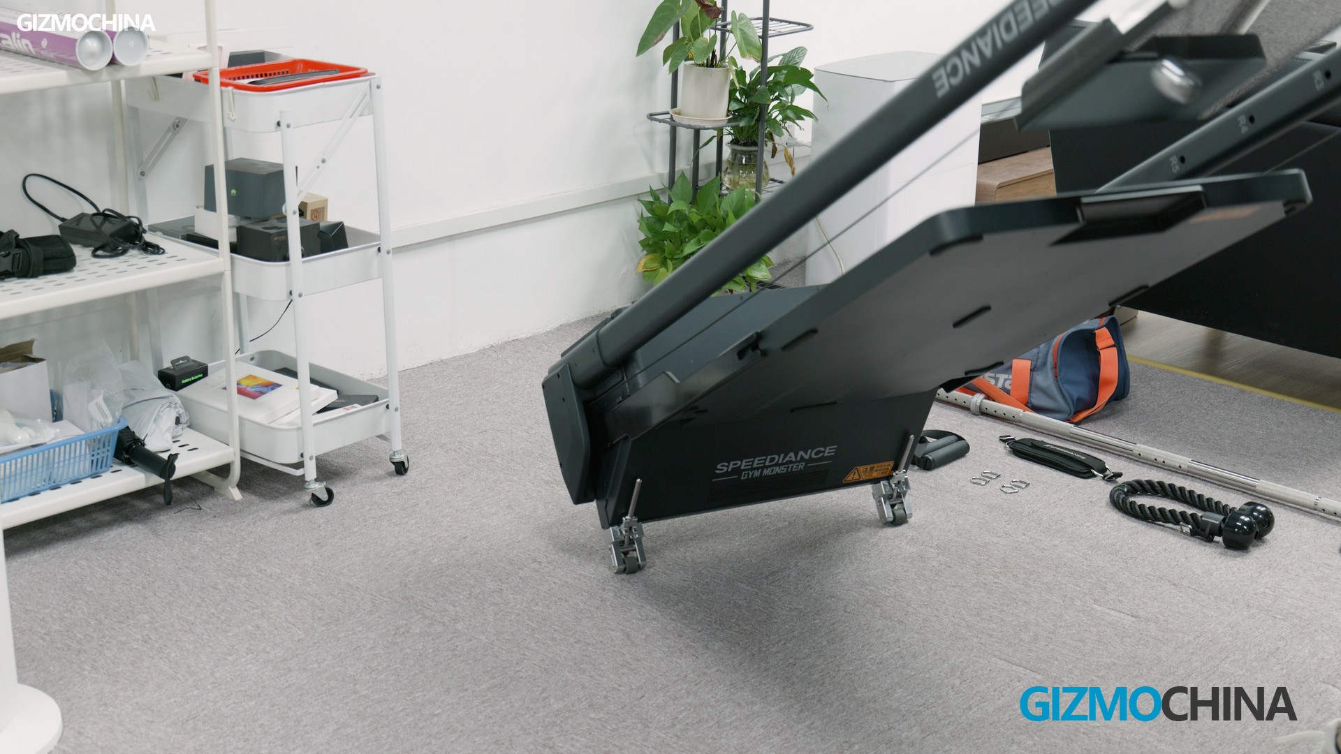 Although this is foldable equipment, the packages are actually very big, and unpacking them can be a bit overwhelming, so it’s better to either watch the instruction video on YouTube or get a helping hand. As you can see, the bottom of the rack and the pad have most of the weight, and there are two wheels here, so we tried to put it up vertically, and then roll it out – This is also the right way to move this unit around.