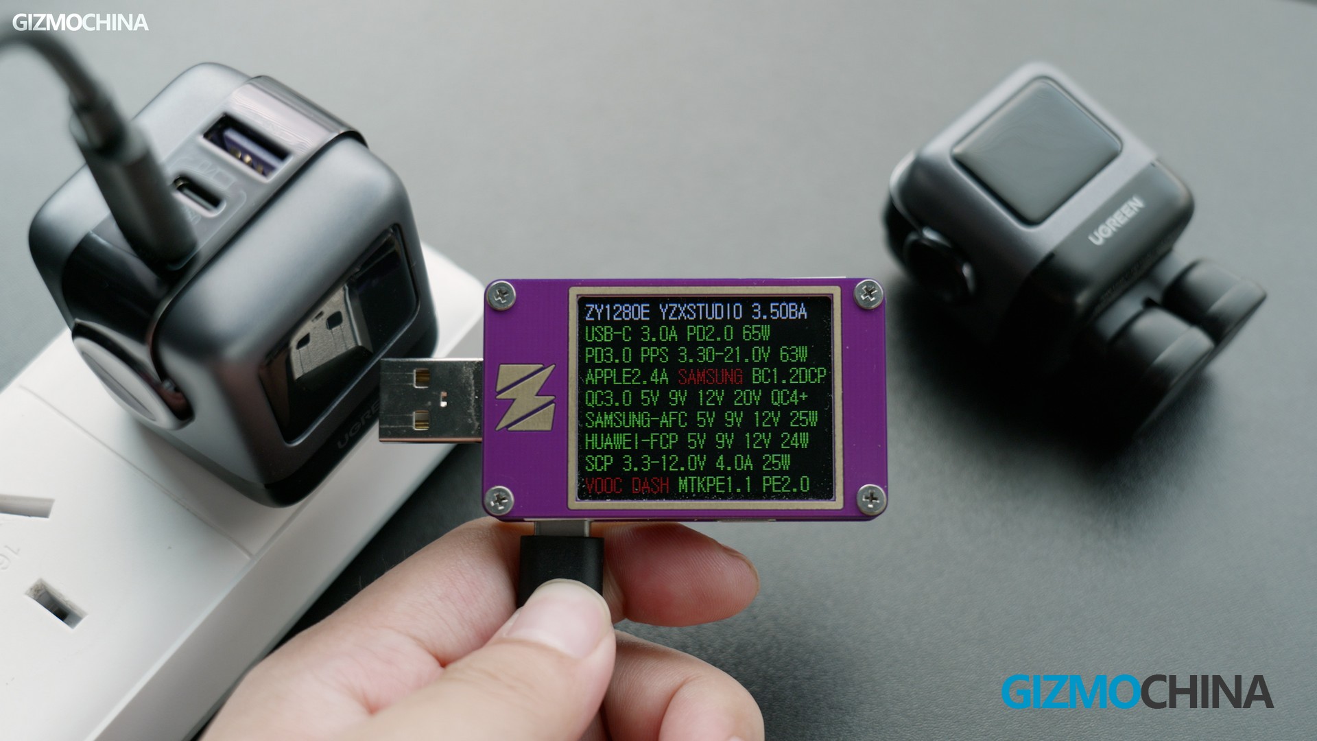 For the RG 65W charger, there are three ports here, two USB-C ports, one USB-A port, clearly it’s more of a charger that sits on the desk often, or if you travel with your laptop and phones every day, you can still take it out with you, it’s fairly light by the way. The charging protocols supported are almost the same as the 30W charger, but it achieved higher voltage on PD and PPS protocols.